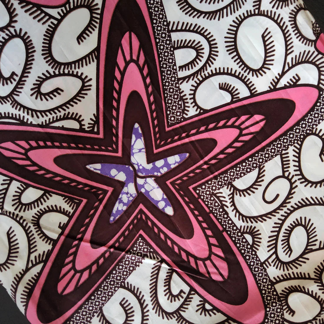 STAR PATTERN AFRICAN WAX BLOCK PRINT FABRIC IN PINK/PURPLE/BLUE MIX- 6 YARDS BUNDLE